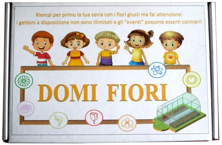 Domi fiori è il quarto di una serie di giochi denominati "Domi" che è l'abbreviazione di "domino", infatti come in quel famosissimo gioco lo scopo finale è ordinare una serie di tasselli (in questo caso gettoni) e nello specifico quelli raffiguranti alcuni tra i fiori più conosciuti che compaiono sulla propria cartella "serra" (diversa per ogni giocatore).