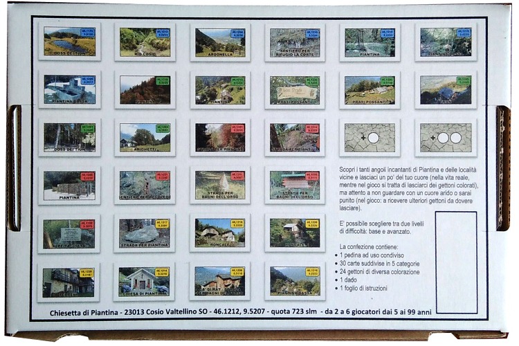 Questo gioco è ambientato nelle località adiacenti Piantina di Cosio Valtellino (provincia di Sondrio) e può essere utilizzato anche come mini guida turistica con tanto di coordinate satellitari (conoscere le varie località non aiuta nel gioco, però può servire a rendere un po' più felici!), ed è il seguito di "Piantina il gioco da tavola".